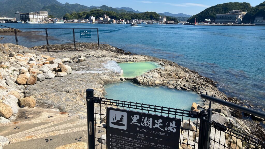 海を眺めながら、自然感たっぷりの足湯は心癒されますね。