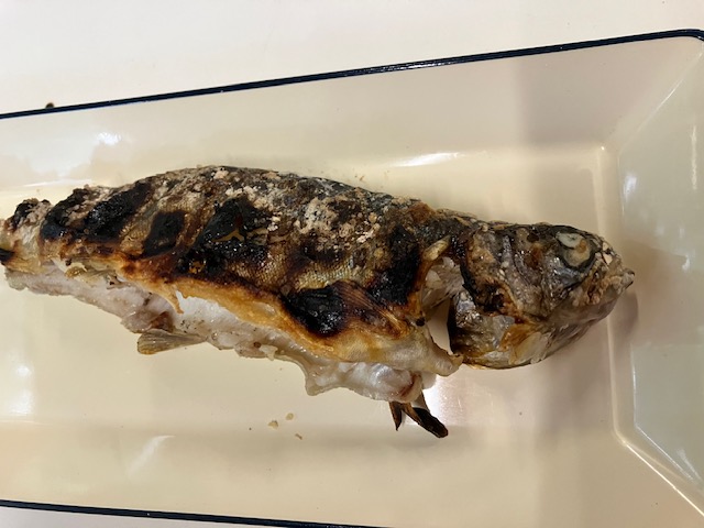 ④ 釣った魚をその場で炭火焼き(所要時間:約1時間)