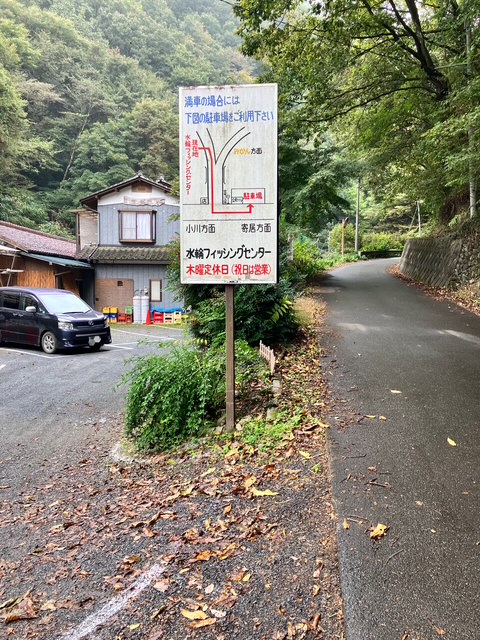 駐車場は、水輪フィッシングセンター前に11台ありますが、少し狭めです。